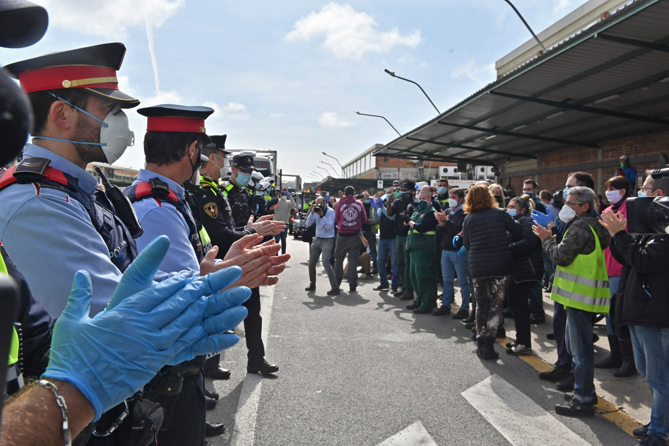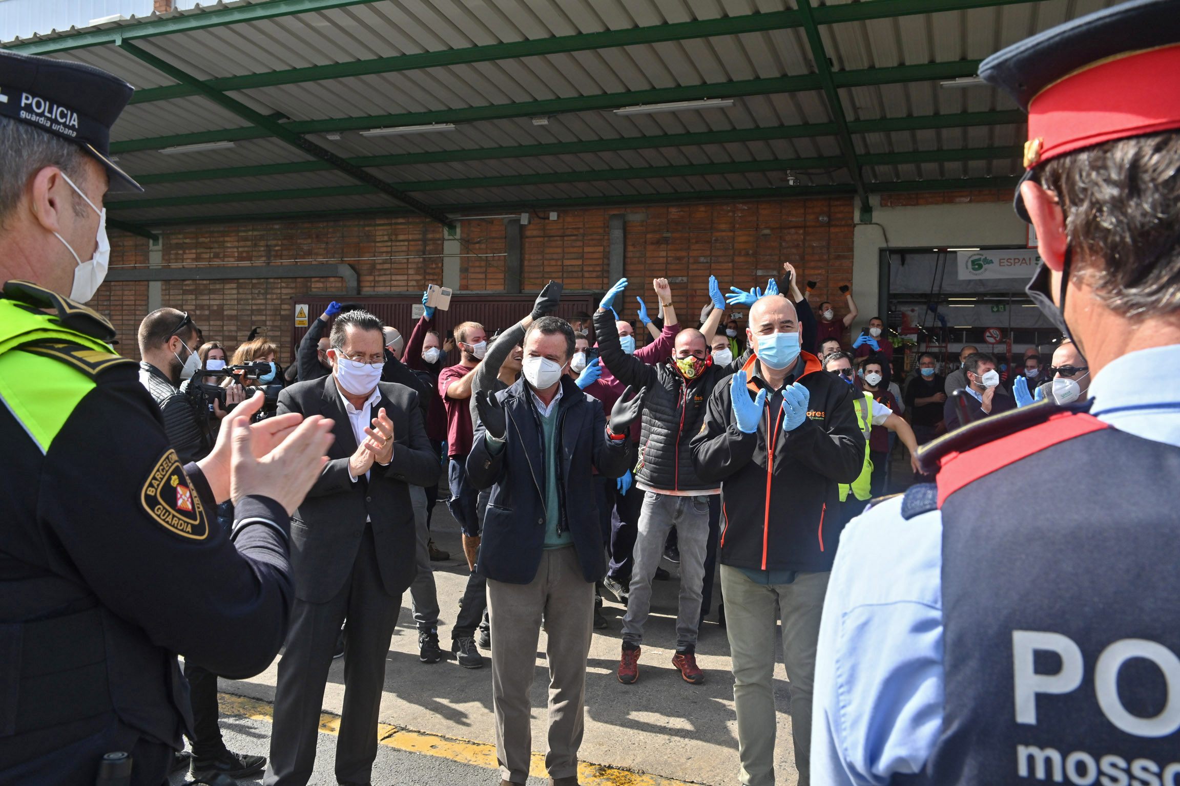 Avui, a les 11:00h, els Mossos d'Esquadra i la Guàrdia Urbana, representats pel cap del cos, Jordi Fàbregas, i pel cap de la UT3 de Sants-Montjuïc, Pedro Velázquez, respectivament, han realitzat un acte de reconeixement als treballadors de Mercabarna per la feina que estan fent per garantir el proveïment alimentari durant aquests dies de confinament de la població, amb motiu de l'estat d'alarma pel Covid19.