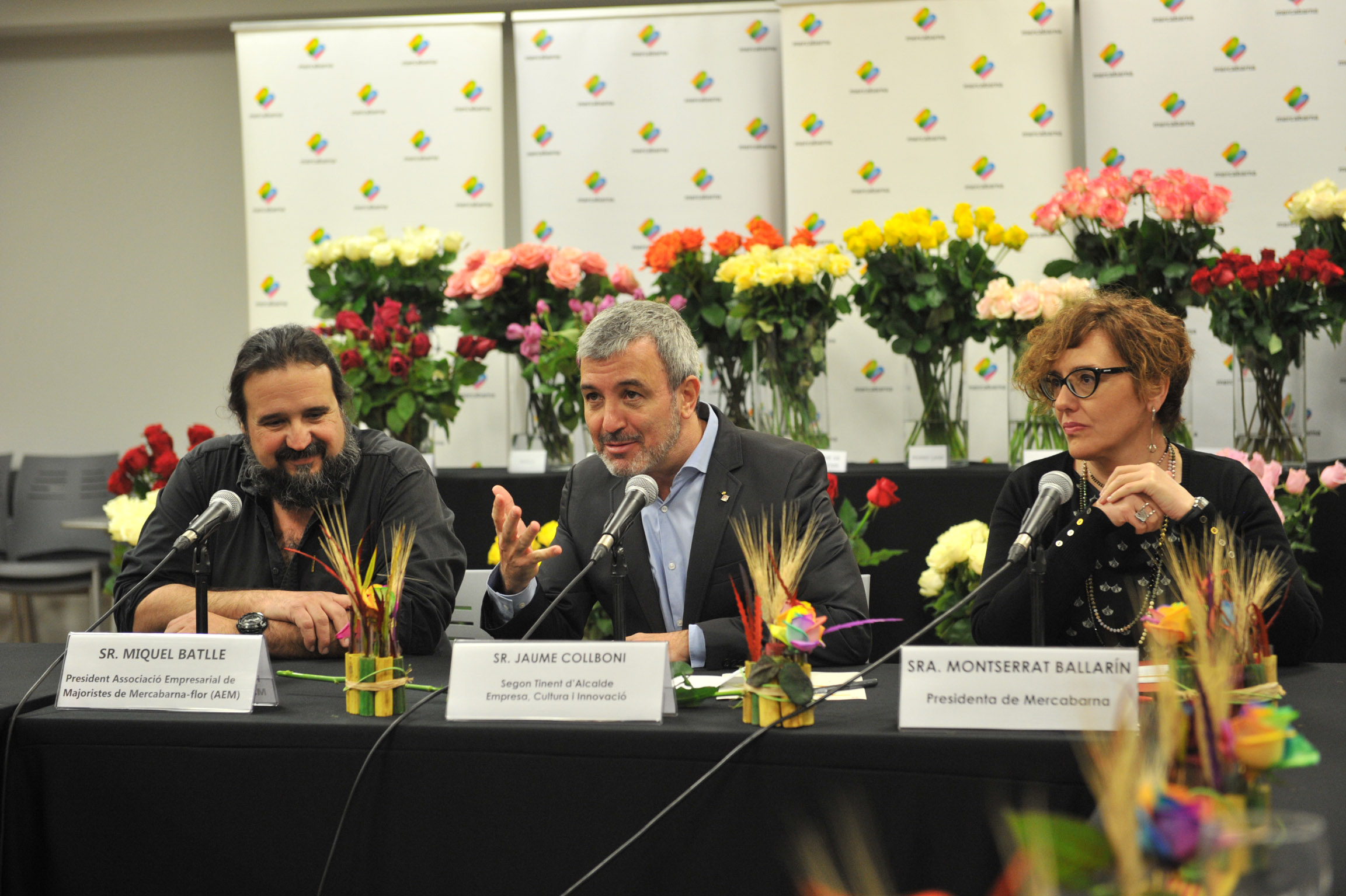 - Foto 1: Collboni, Ballarín i Batlle, durant la roda de premsa on es van presentar les previsions de vendes de roses.
