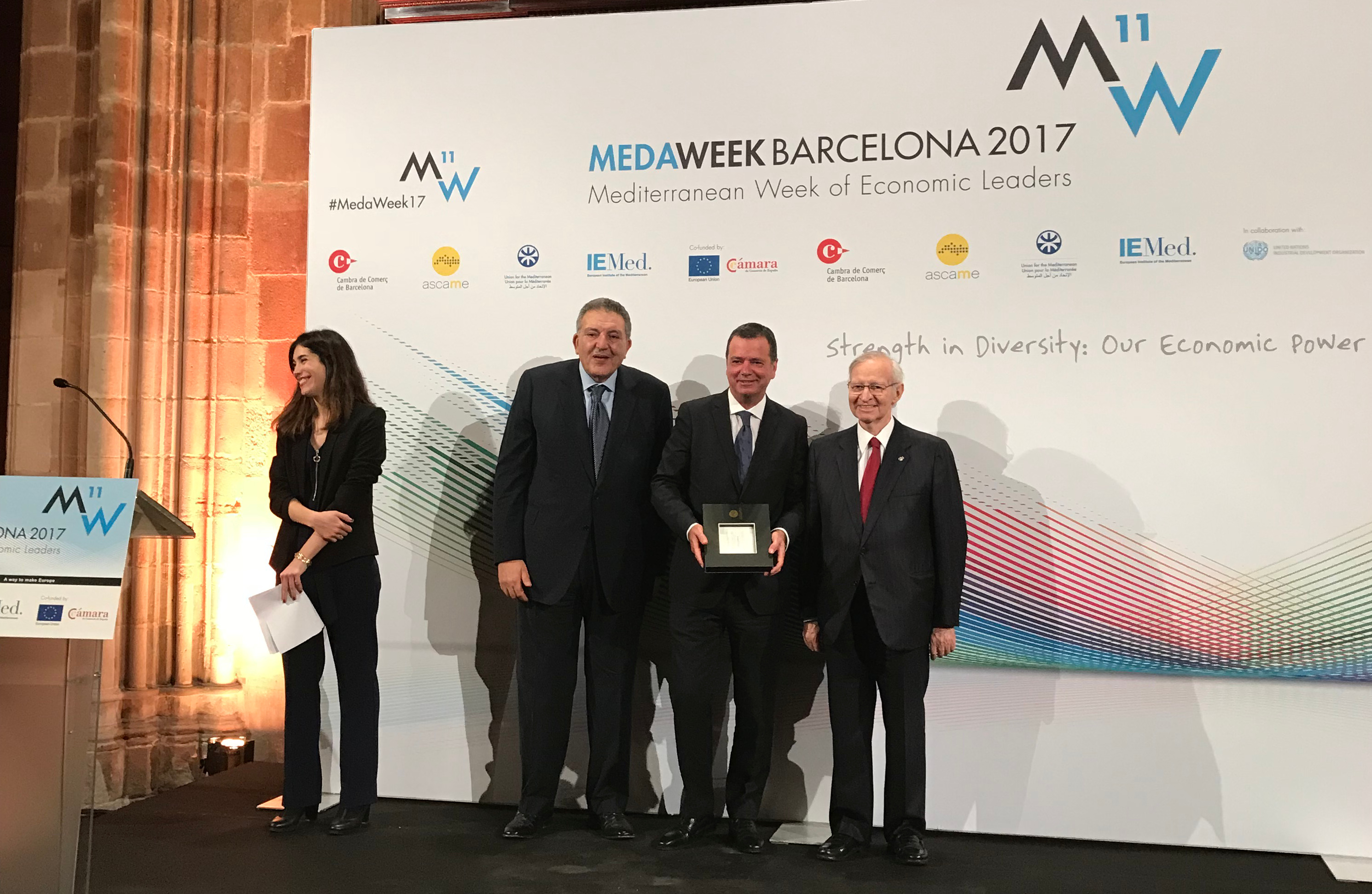 Aquest premi va ésser lliurat pel president d'ASCAME, Mohamed Choucair, al director general de Mercabarna, Josep Tejedo, ahir, 22 de novembre, durant el sopar de gala de l'11-ena edició de la Medaweek BCN 2017 (Mediterranean Week of Economic Leaders), organitzada per ASCAME a la Casa Llotja de Barcelona.