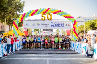The runners, with their numbered bibs clearly visible on their special anniversary shirts, gathered at the starting line in the Carrer Major, decorated for the occasion with colourful balloons and crowned with a golden number 50. The race began at 11 o'clock in the morning and, like last year, went through the food park streets, passing important locations such as the Central Fish Market and Halls B, C and F of the Central Fruit and Vegetable Market, where a number of open stalls gave a warm welcome to the athletes.