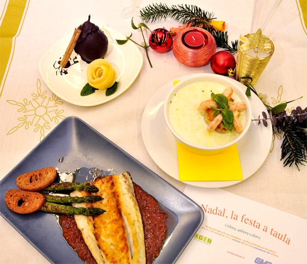 Un any més, els representants empresarials van recomanar als consumidors anar a comprar sense idees preconcebudes i apostar pels productes que millor relació qualitat-preu presenten. Per mostrar com fer un àpat nadalenc saborós, saludable i assequible per a les butxaques, els Gremis van presentar dues propostes de menús, avalats per la Fundació Dieta Mediterrània. Un de 13€, a base de sopa de meló amb gambes, corball amb espàrrecs vers i salsa romesco i peres banyades amb xocolata, i l’altre, de 15€, integrat per una amanida amb salmó, lluç a la Donostiarra i, de postres, pomes al forn amb crema catalana.