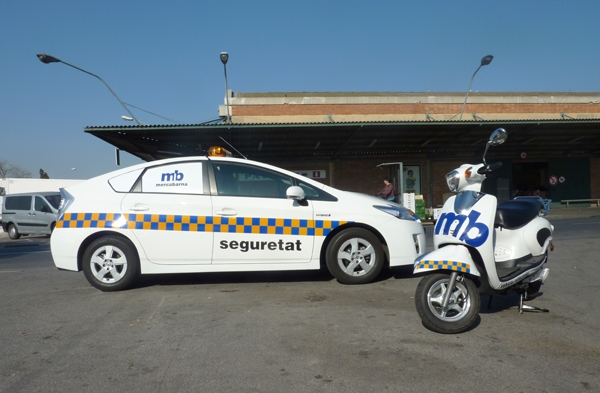 Mercabarna disposa de nous vehicles per patrullar pels carrers de la Unitat Alimentària. Es tracta de dos cotxes híbrids, que són més respectuosos amb el medi ambient (emeten menys quantitats de CO2 que els cotxes tradicionals) i consumeixen menys combustible, ja que a velocitats inferiors a 40km/h circulen amb motor elèctric.