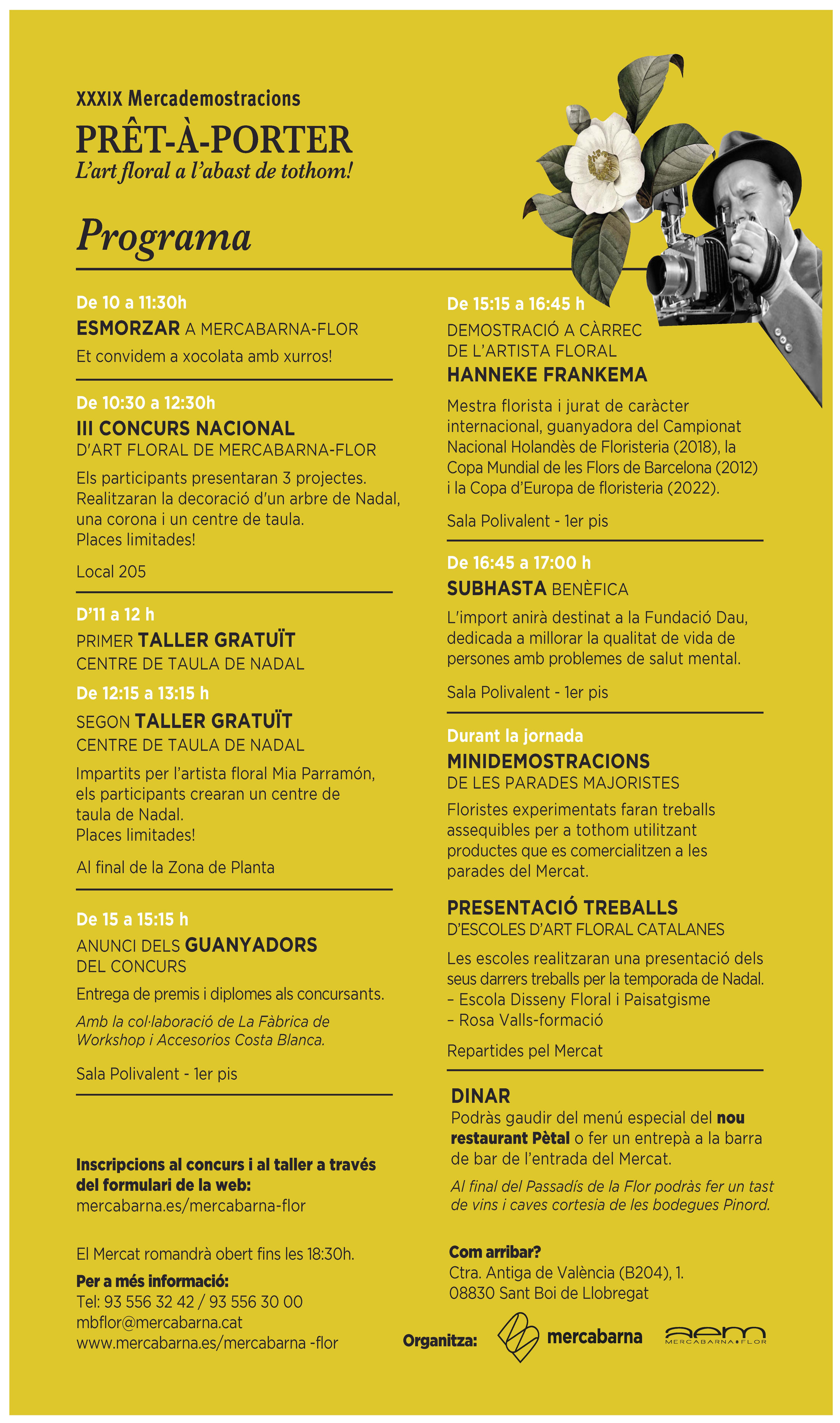 El florista Mia Parramon organitzarà dos tallers gratuïts (un a les 11h i un altre a les 12:15h), on els participants elaboraran un centre de taula de Nadal.